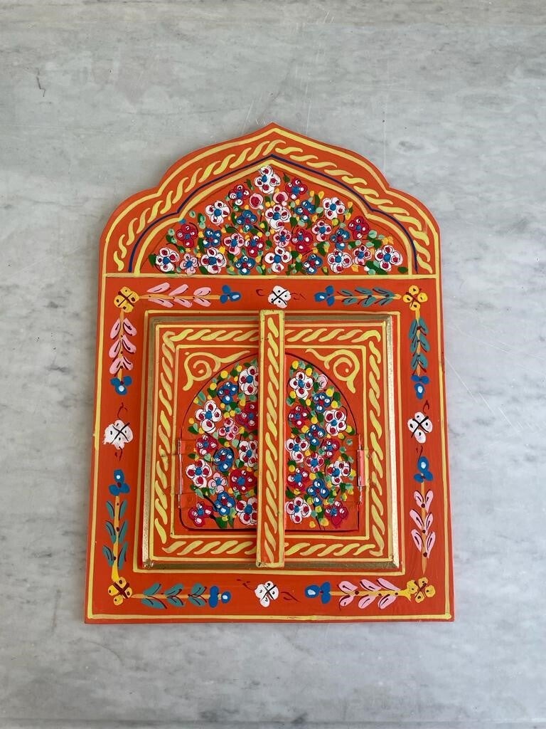 De beschilderde spiegels zijn met de handgemaakt en beschilderd in Marokko. De luikjes kun je openen en sluiten. Je kunt deze schattige plekjes overal in huis ophangen of neerzetten. Denk aan je gang, slaapkamer, woonkamer, hal en zelfs in het toilet is het een ware eye catcher!