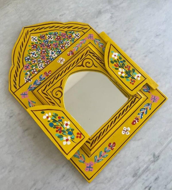 De beschilderde spiegels zijn met de handgemaakt en beschilderd in Marokko. De luikjes kun je openen en sluiten. Je kunt deze schattige plekjes overal in huis ophangen of neerzetten. Denk aan je gang, slaapkamer, woonkamer, hal en zelfs in het toilet is het een ware eye catcher!
